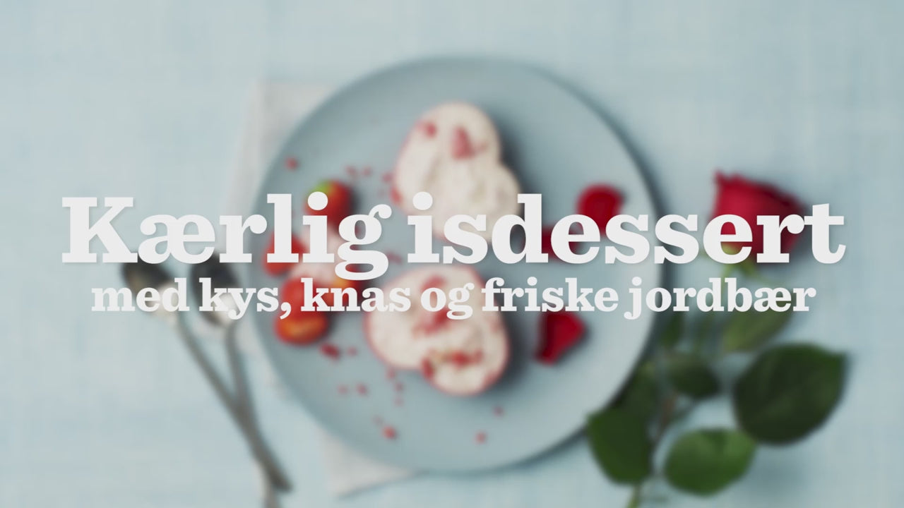 Kærlig isdessert med kys, knas og friske jordbær – sød forkælelse med hjertet først